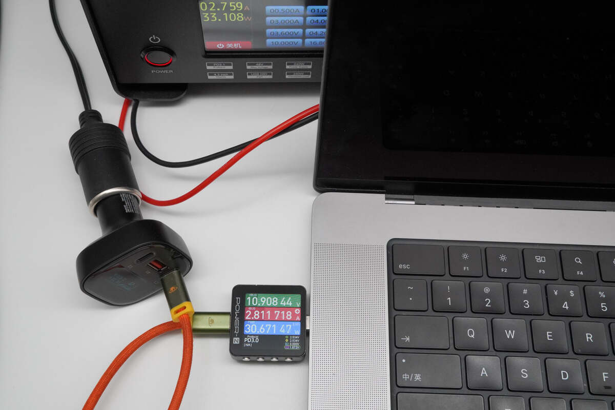 通过俊凯达B5 101W车载充电器 C1端口对MacBook Pro 16 笔电进行充电,实测当前充电功率为10.91V 2.81A 30.67W。