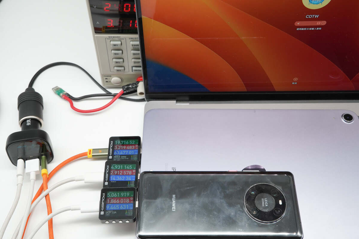 对以上主流设备进行充电实测,可以看到充电设备可握手9V、12V、20V等电压档位,C2端口支持升压输出。
